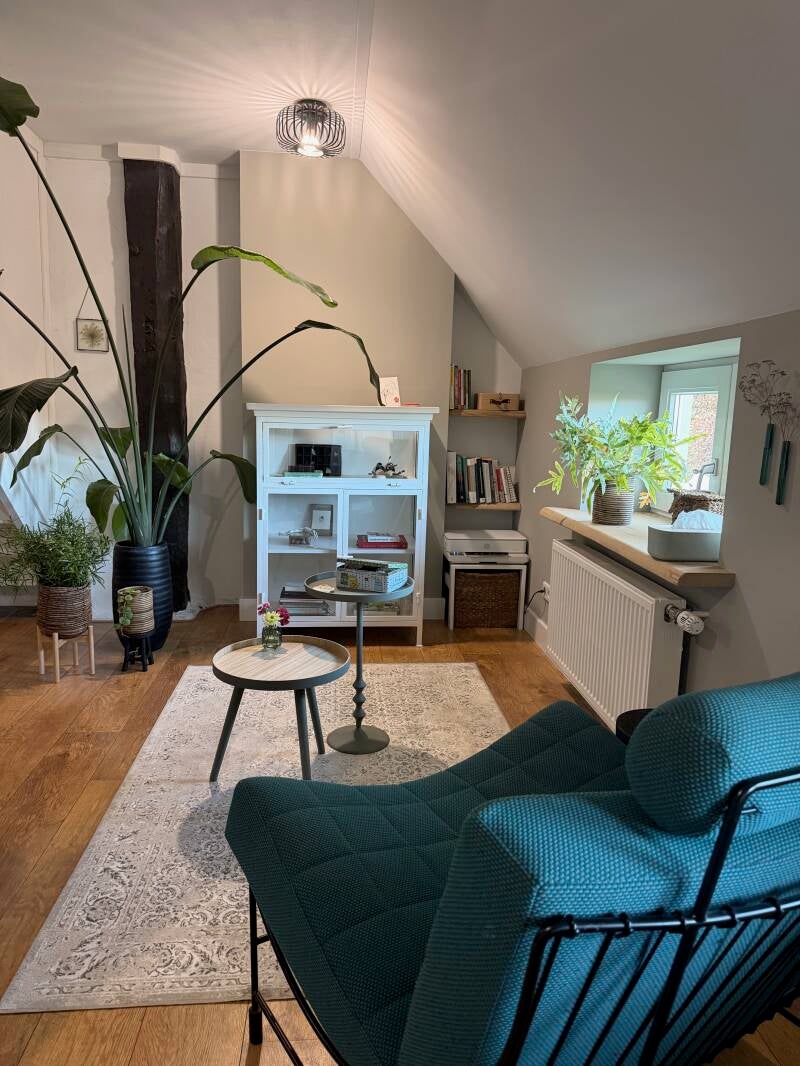 Ik heb een praktijkruimte aan huis in Dalfsen, op ongeveer 15 minuten rijden vanaf het centrum van Zwolle. Dit is een warme, professionele ruimte in een mooie omgeving, vlakbij de uiterwaarden van de Vecht. Bij deze locatie is het heel goed mogelijk om ervoor te kiezen even de natuur in te gaan, als dat je voorkeur heeft en de aard van de sessie daar ruimte voor biedt.